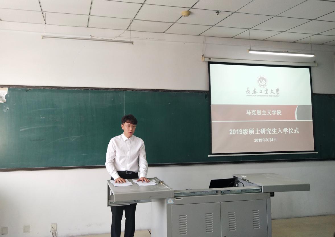 党总支书记朱兴国、院长马光焱、副院长王晓光及各教研室主任、支部书记、部分研究生导师及全体2019级研究生出席仪式。仪式由学院教师兼研究生教学秘书王薪童老师主持。