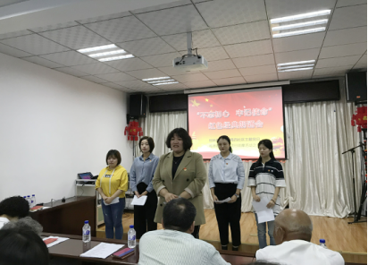 学生党员代表们以“建国的故事”为主题讲述了从红船到中华人民共和国诞生的过程,历史记忆努力还原,岁月叠加代入感,她们完美呈现了在民族危亡面前中国人的民族觉醒和奋勇抗争。历史的回顾让在座的老党员们热泪盈眶,更让新一代年轻党员牢记使命,守住初心,砥砺前行。活动结束后,全体党员同志合影留念。