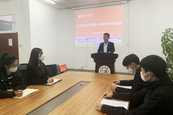 第三次研究生代表大会在学院会议室召开。大会的指导思想是:以习近平新时代中国特色社会主义思想为指导,深入贯彻落实习近平总书记关于青年工作的重要思想和关于教育的重要论述,深入学习宣传贯彻党的二十大精神,以保持和增强政治性、先进性、群众性为目标,发挥政治上的表率作用、组织上的动员作用、学习科研上的标兵作用,服务研究生成长,为学院发展建设贡献智慧与力量。