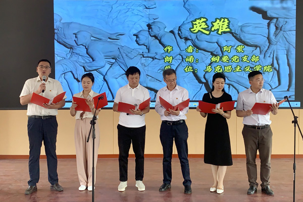 本网讯(通讯员 杨慧娇为推动学习贯彻习近平新时代中国特色社会主义思想走心走深走实,在中国共产党成立102周年之际,猫都论坛 党委举办“忆峥嵘岁月,诵百年荣光”红色经典朗读会。学院党政班子成员、全体师生党员参加了活动。
