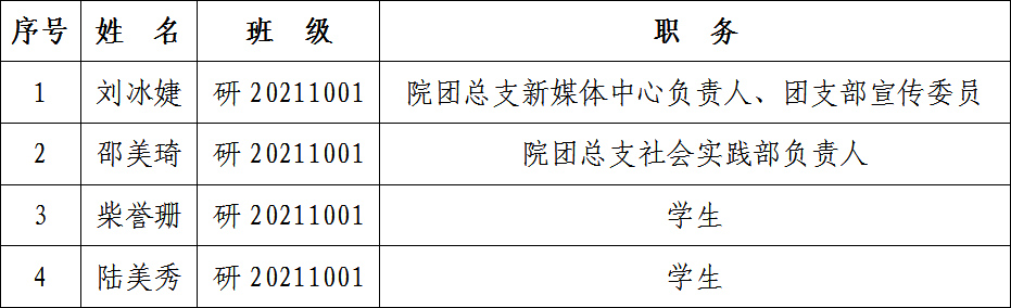 为了认真贯彻党的发展党员工作方针,充分发扬民主,增加发展党员工作的透明度,把好发展党员质量关,确保新党员质量,经本学院党委研究,现将已列入2023年度发展计划,且通过党支部民主测评的发展对象在全院范围内公示。公示时间为5个工作日(2023年4月17日至2023年4月21日)。在公示期内,党内外群众如对发展对象有意见,请以真实单位、姓名,用书面、电话等形式如实反映情况。群众反映的问题可受到法律保护,我们将严格保密。