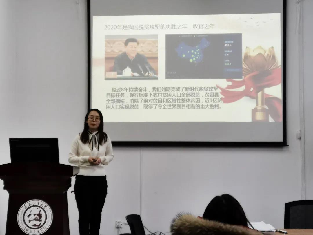 张鸿冰,尚昭晨,魏向宇三位2020年新入职教师分别以《日本发动灭亡中国的侵略战争》《坚定文化自信,建设社会主义文化强国》《决胜脱贫攻坚,共享全面小康》为主题进行了精心备课,巧妙地设计教学内容,向大家展现了一堂生动的思政课。