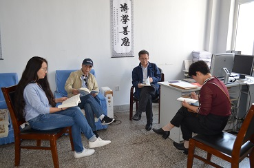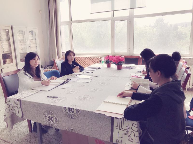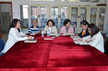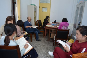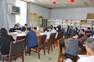 在资料室召开会议,布置新教材集体备课相关工作,学院领导班子和全体教师参加了会议。