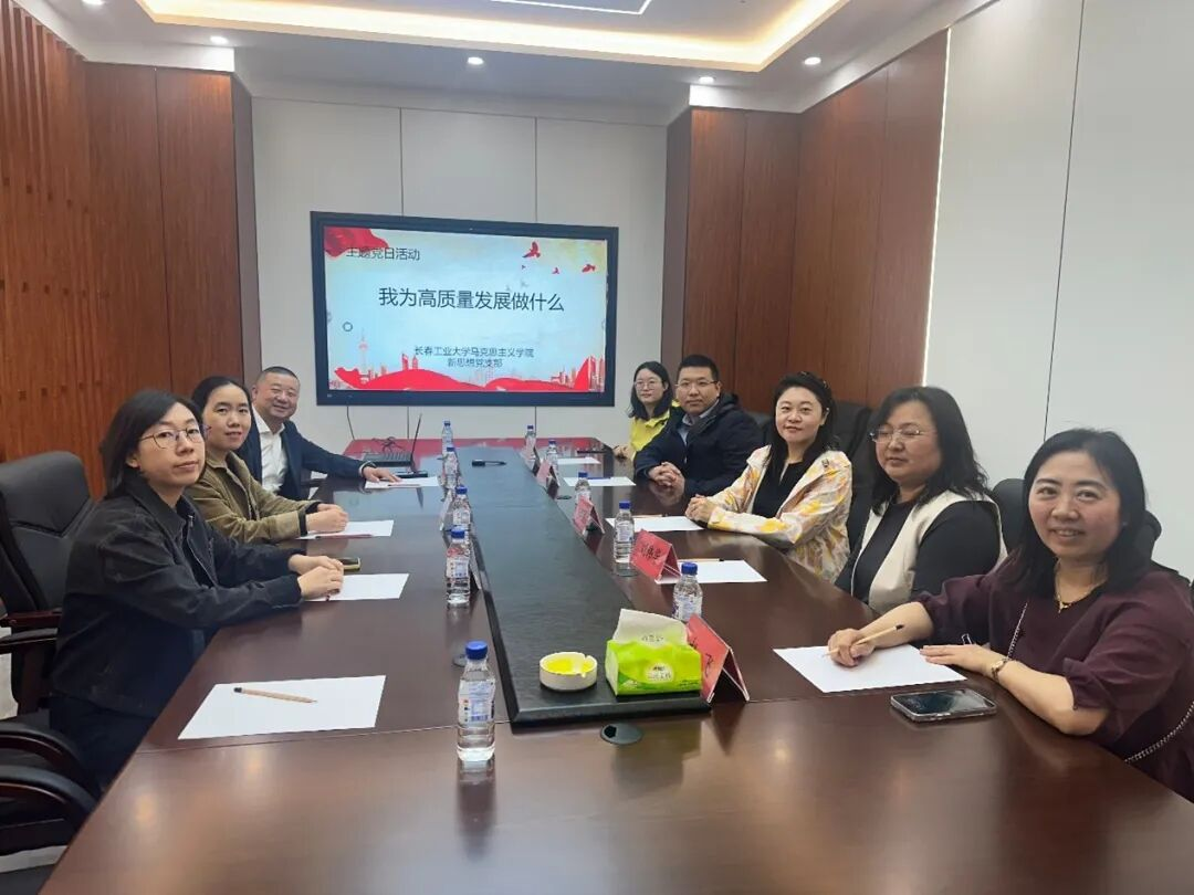 新思想党支部开展“我为高质量发展做什么”主题党日活动。此次活动旨在通过实地调研和集体备课等环节,进一步深入挖掘《习近平新时代中国特色社会主义思想概论》课堂与“高质量发展”的结合点,更好地在教学中深度发挥党建引领作用,激励学生以实际行动践行高质量发展要求,为新时代中国特色社会主义各项事业的高质量发展注入红色动能。