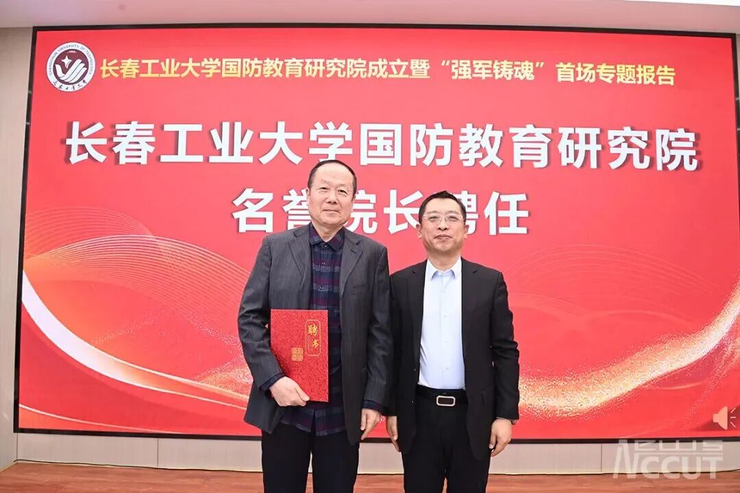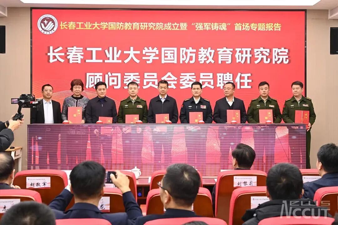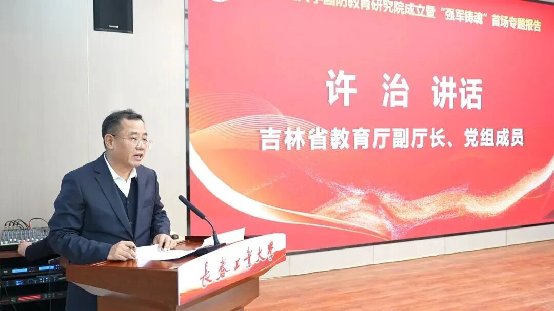 国防教育研究院成立暨“强军铸魂”首场专题报告会在北湖校区举行。吉林省国防动员办公室党组书记、主任韩阳,长春警备区大校政治委员李建厂,吉林省委宣传部部务会成员张大鹏,吉林省教育厅党组成员、副厅长许治,吉林省军区政治工作局宣传处上校处长段锐,长春警备区政治工作处上校主任张焕荣,朝阳区人民武装部上校部长于洋等军地部门领导与学校党委书记陈权、校长付跃刚及师生代表共同见证这一重要时刻。活动由副校长胡刃锋主持。